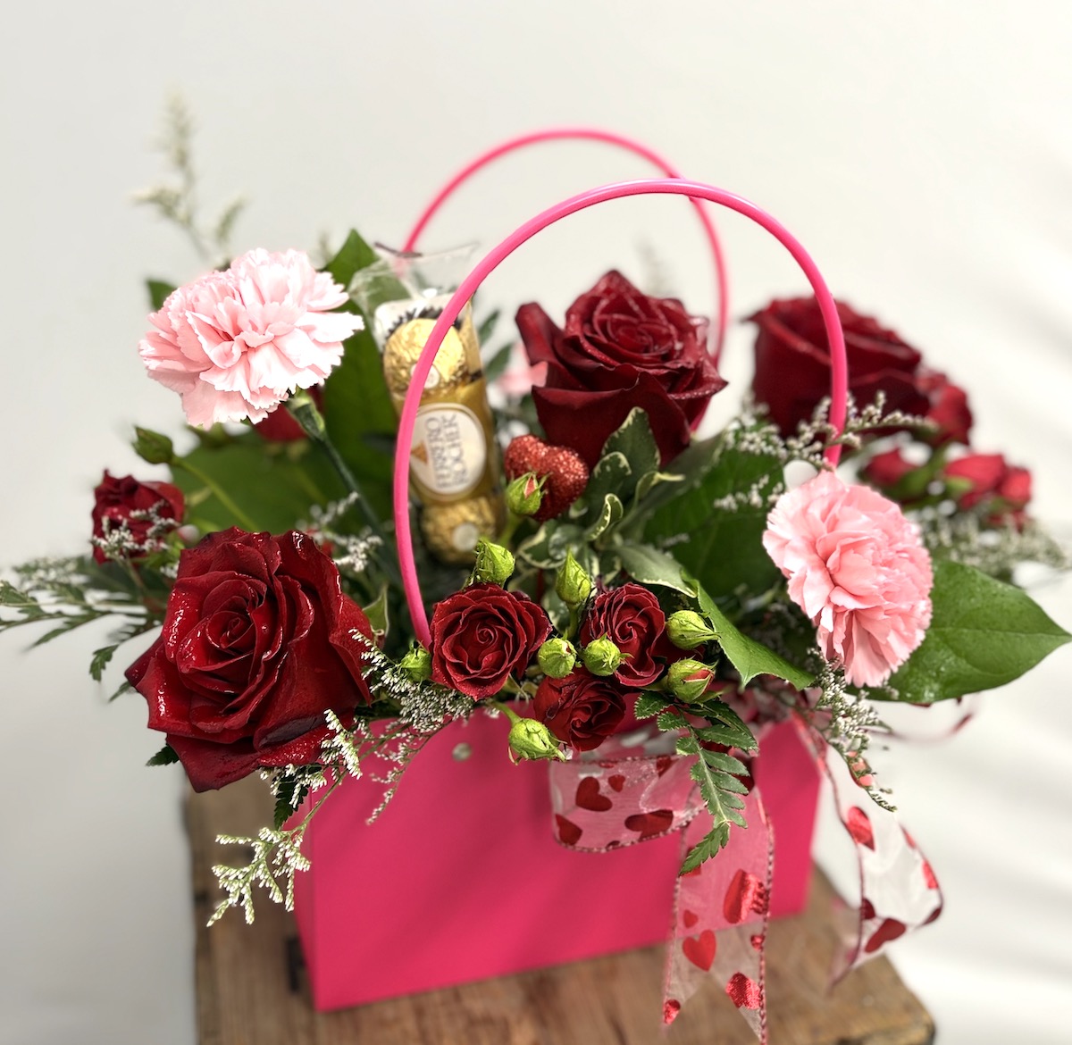 Crafted with care by the florists at Flowers by the Neuse, Pink Crush Bag brings together the perfect blend of texture, color, and style — a fresh way to share affection for birthdays, anniversaries, Valentine’s Day, or just because.